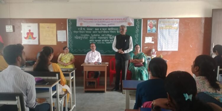 सोलापूर : येथील डी.बी.एफ. दयानंद कला व शास्त्र महाविद्यालयात ‘नवोपक्रम, नवसंशोधन आणि साहचर्य मंडळ’ आणि संस्कृत विभाग यांच्या संयुक्त विद्यमाने नॅशनल स्टार्टअप डे च्या निमित्ताने “सोलापुरातील उद्योग व्यवसाय आणि पीच प्रस्तुती” या विषयावर विशेष व्याख्यानाचे आयोजन करण्यात आले.