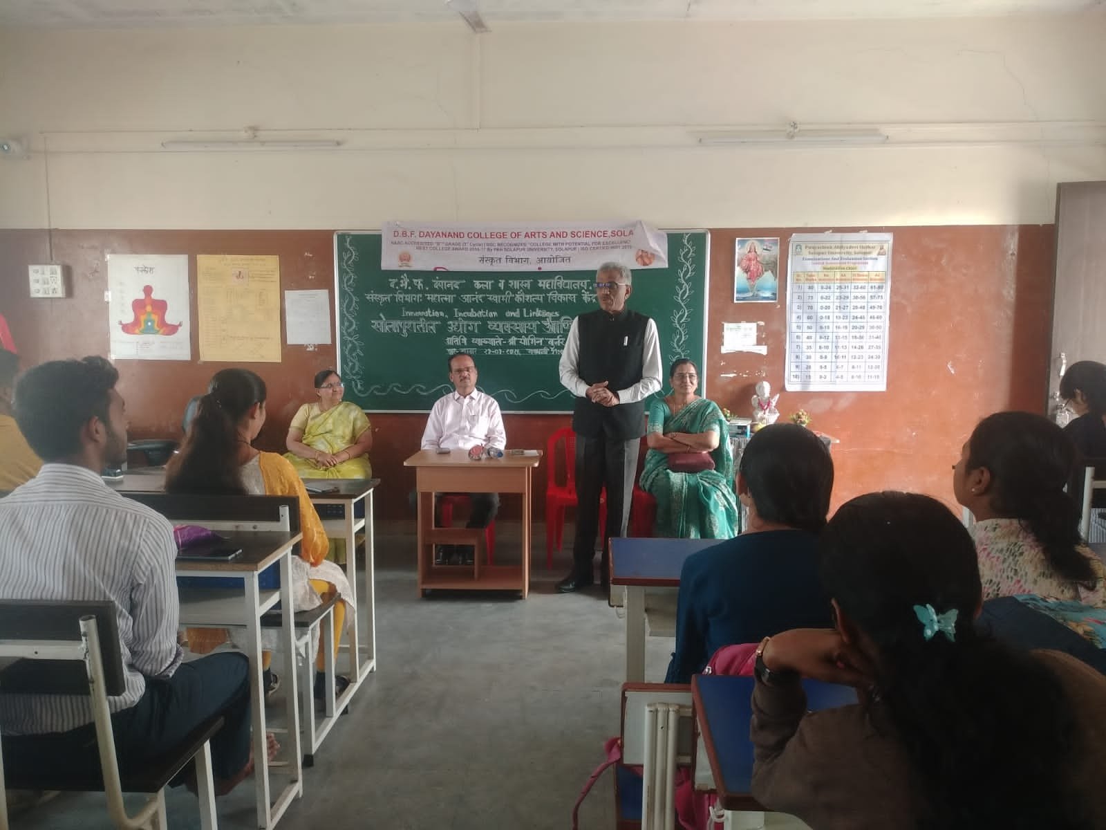 सोलापूर : येथील डी.बी.एफ. दयानंद कला व शास्त्र महाविद्यालयात ‘नवोपक्रम, नवसंशोधन आणि साहचर्य मंडळ’ आणि संस्कृत विभाग यांच्या संयुक्त विद्यमाने नॅशनल स्टार्टअप डे च्या निमित्ताने “सोलापुरातील उद्योग व्यवसाय आणि पीच प्रस्तुती” या विषयावर विशेष व्याख्यानाचे आयोजन करण्यात आले.