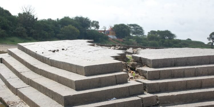 फोटोओळी – पंढरपूर – येथील चंद्रभागा नदीच्या पात्रात असणाऱ्या विविध पुरातन घाटां बरोबरच चंद्रभागेच्या पात्रात असलेल्या पुरातन मंदिरे , साधुसंतांच्या समाध्या तसेच चौफाळ्याच्या दगडी कट्यांची देखील मोठी दूरवस्था झालेली दिसत आहे.