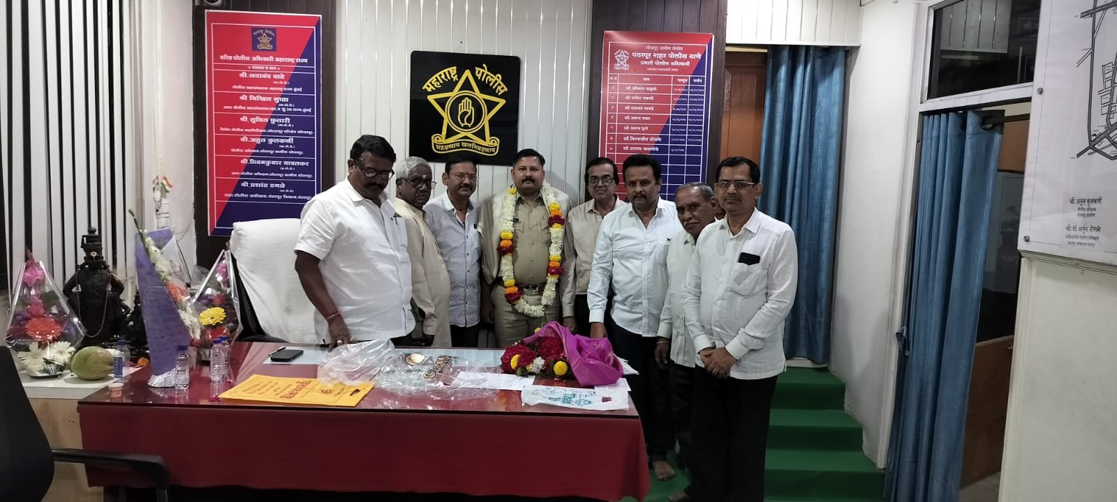पंढरपूर – व्यापारी महासंघ,पंढरपूर व व्यापारी कमेटी पंढरपूर यांच्या वतीने माघी यात्रेत निमित्त शहर पोलीस स्टेशन येथे विविध प्रश्नांवर मिटींगचे आयोजन केले होते. यावेळी पंढरपूर शहराचे नुतन वरिष्ठ पोलीस निरीक्षक दशरथ वाघमोडे यांचा शहरातील व्यापाऱ्यांकडून सत्कार करण्यात आला.