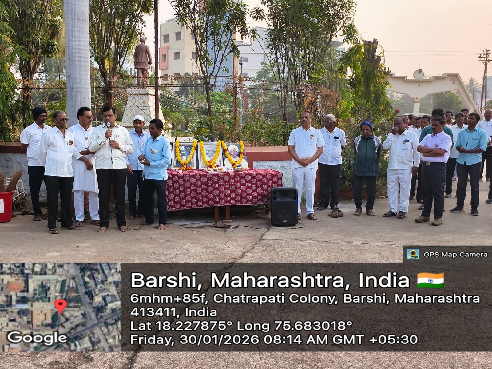 कार्यक्रमाच्या सुरुवातीला छत्रपती शिवाजी महाराज, राष्ट्रपिता महात्मा गांधी, कर्मवीर डॉ. मामासाहेब जगदाळे व यांच्या प्रतिमेस पुष्पांजली अर्पण करुन स्वच्छता मोहिमेला प्रारंभ करण्यात आला. उद्घाटन व पूजेचा मान बी. पी. सुलाखे कॉमर्स कॉलेजचे नाईट वॉचमन बळीराम जगदाळे व महाराष्ट्र विद्यालय, बार्शी येथील सेवक मोतीराम काळे यांच्या हस्ते देण्यात आला. श्रमप्रतिष्ठेला दिलेला हा सन्मान उपस्थितांसाठी प्रेरणादायी ठरला.