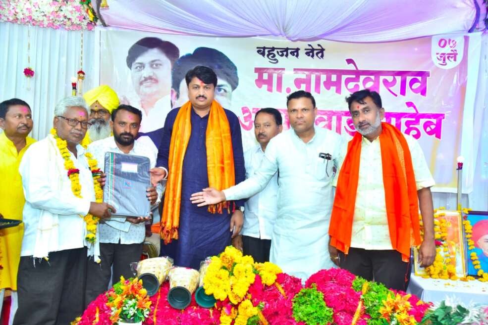 भोकर(प्रतिनिधी)नांदेड जिल्ह्याचे ओबीसी नेते नामदेवराव आयलवाड यांचा वाढदिवस दि.७ जुलै २०२४ रोजी भोकर शहरातील गणराज रिसॉर्ट येथे विविध उपक्रमांनी साजरा करण्यात आला.यावेळी कुलदैवत भगवान श्रीकृष्ण यांचे पूजन व तदनंतर छत्रपती शिवाजी महाराज,महात्मा फुले, डॉ.बाबासाहेब आंबेडकर,लोकशाहीर अण्णाभाऊ साठे या महामानवांना अभिवादन करण्यात आले. त्यानंतर केक कापून कार्यक्रमाची सुरुवात करण्यात आली. यावेळी ओबीसी चळवळीतील रामेश्वर गौड महाराज बारडकर एस.जी. माचनवार, नंदकुमार कोसबतवार,जेष्ठ पत्रकार एल.ए.हिरे, प्रगतशील शेतकरी मारोती वागदकर आदींची उपस्थिती होती.