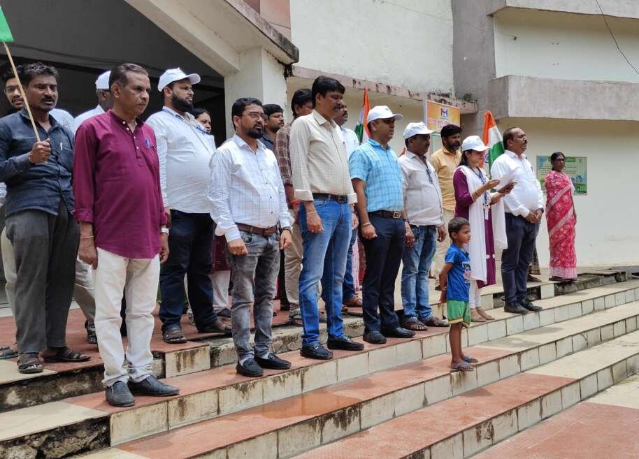 हदगाव शहरातील विवेकानंद विद्यालय येथील शिक्षक,विद्यार्थी व हदगाव शहरातील नागरिकांनी मोठ्या प्रमाणात सहभाग नोंदविला. सदर तिरंगा रॅली ही मोठ्या उत्साहावर्धक वातावरणात गाजत वाजत वंदे मातरम् चे नारे देत नगर परिषद हदगाव ते डॉ.बाबासाहेब आंबेडकर चौक मार्गे नगर परिषद हदगाव कार्यालय येथे समाप्त करण्यात आली. सदर रॅली चे संपूर्ण नियोजन नगर परिषदेचे कार्यालयीन अधीक्षक सतीश देशमुख यांनी केले. सदर रॅली मध्ये नगर परिषदेचे सचिन वाघमारे, कुलदीप बोकारे ,प्रसाद कदम, चक्रपाणी कदम, प्रवीण मंगनाळे, सखाराम बोरकर, प्रणाली मुजमुळे, शेख अजीम, अर्चना वानखेडे यांच्यासह इतर विभागातील कर्मचारी ही उपस्थित होते.