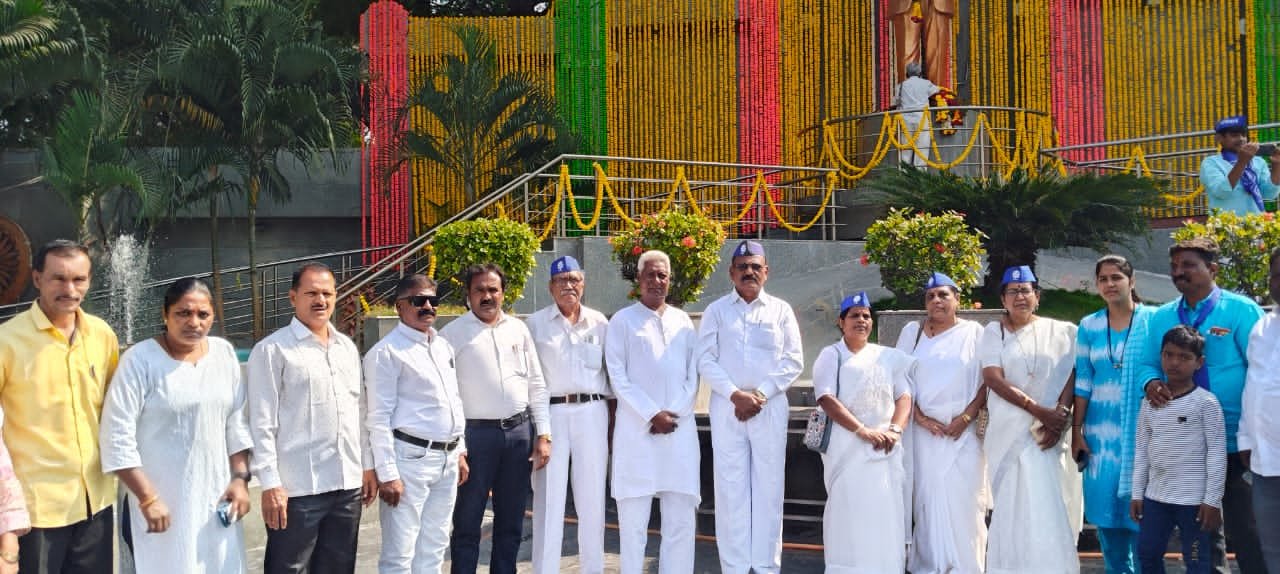 सोलापूर : संविधान दिनाच्या अमृत महोत्सव निमित्त समता सैनिक दल शहर जिल्हा सोलापूर यांच्या वतीने डॉ. बाबासाहेब आंबेडकर चौकातील डॉ. बाबासाहेब आंबेडकर यांच्या पूर्णाकृती पुतळ्यास पुष्पहार अर्पण करून मानवंदना देण्यात आली.