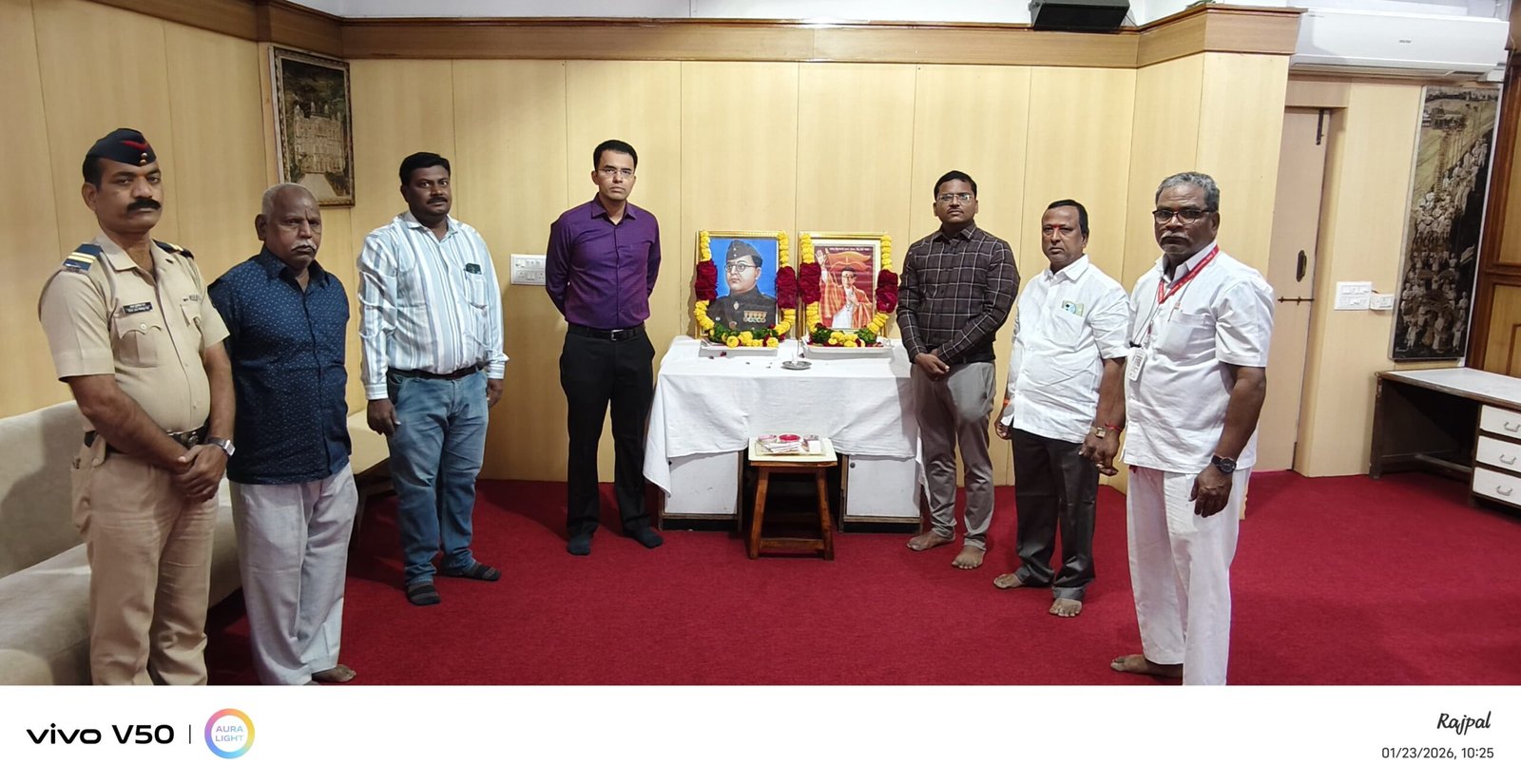 त्यानंतर सोलपूर महानगरपालिकेच्या वतीने नेताजी सुभाषचंद्र बोस यांच्या जयंतीनिमित्त व शिवसेना प्रमुख स्व.बाळासाहेब ठाकरे यांच्या जयंतीनिमित्त सोलापूर महानगरपालिकेच्या कौन्सिल हॉल येथील आयुक्त यांच्या कार्यालयात नेताजी सुभाष चंद्र बोस व शिवसेना प्रमुख स्व. बाळासाहेब ठाकरे यांच्या प्रतिमेस आयुक्त डॉ.सचिन ओम्बासे यांच्या हस्ते पुष्पहार अर्पण करून अभिवादन करण्यात आले.