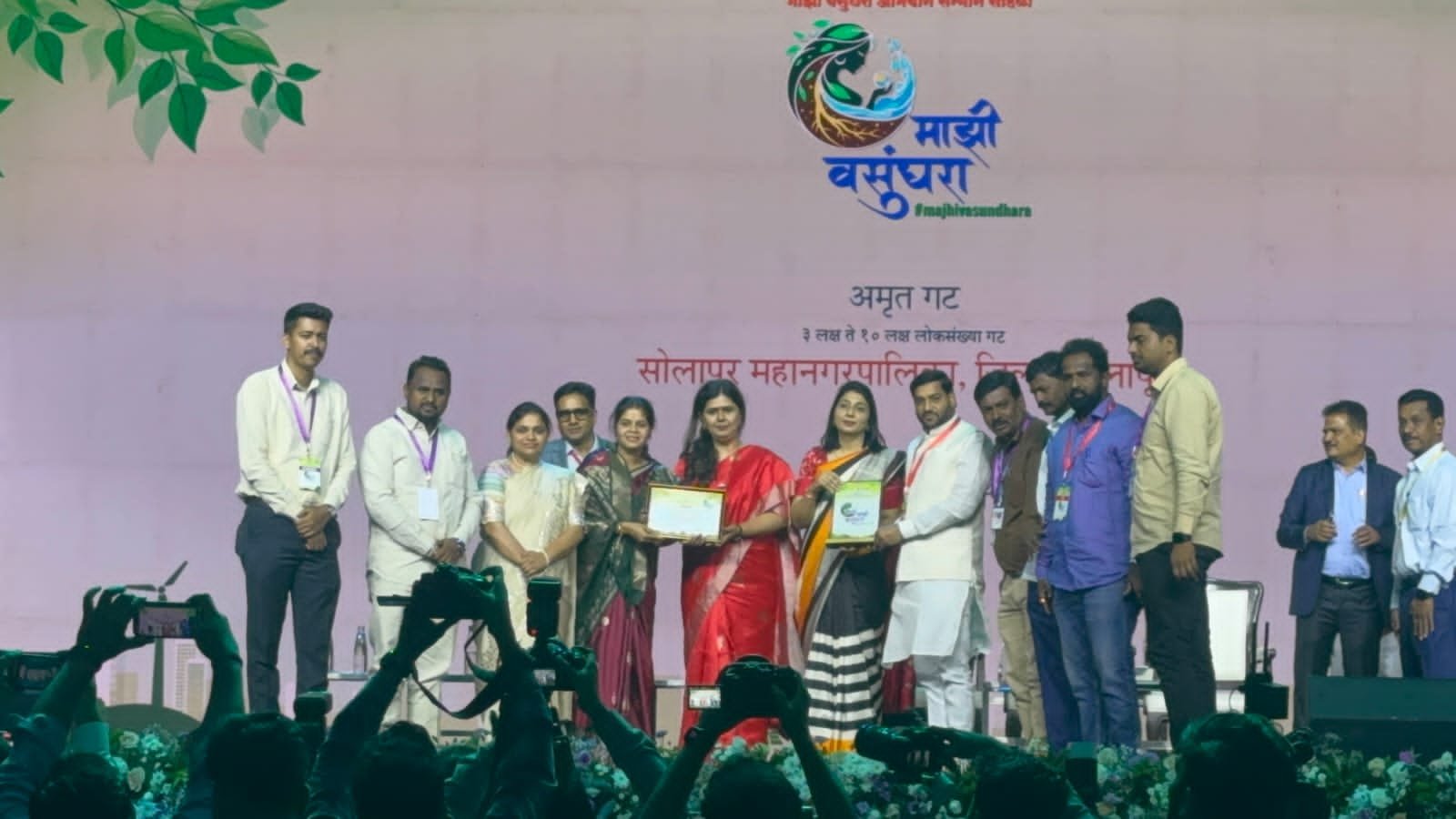 सोलापूर : महाराष्ट्र शासनाच्या माझी वसुंधरा ४.० अभियानांतर्गत सोलापूर महानगरपालिकेने उल्लेखनीय कामगिरी करत ‘भूमी’ या घटकात राज्यस्तरावर ३ लाख ते १० लाख लोकसंख्या गटामध्ये एकमेव शहर म्हणून मानाचा दोन कोटी रुपयांचा विशेष पुरस्कार पटकावला. या उल्लेखनीय यशामुळे पुणे विभागात सोलापूर महानगरपालिका प्रथम क्रमांकावर ठरली आहे.