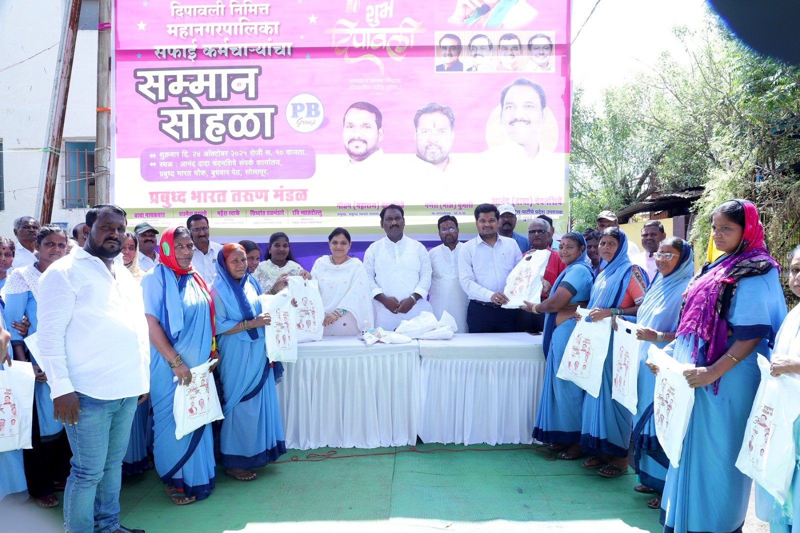 या कार्यक्रमाचे सूत्रसंचालन श्रीमंत जाधव यांनी केले. यावेळी माजी नगरसेवक गणेश पुजारी, भारत बाबरे, सफाई अधीक्षक अनिल चराटे , मुख्य सफाई आरोग्य निरीक्षक नरसिंह बच्चू, आरोग्य निरीक्षक बसवराज जमादार, आरोग्य निरीक्षक सचिन वडवेराव, आरोग्य निरीक्षक पद्मावती इंगळे, आरोग्य निरीक्षक सचिन कदम, आरोग्य निरीक्षक रोहित गवळी, पी.बी. ग्रुप प्रमुख गौतम चंदनशिवे, अविनाश भडकुंबे, नितीन बंदपट्टे, चंद्रकांत सोनवणे, पी.बी. ग्रुप अध्यक्ष बाबा गायकवाड, आदित्य चंदनशिवे, गौतम नागटिळक, मनोज थोरात, अनिस सय्यद, गौतम शिंदे, अजय इंगळे, विकी माळाळे तसेच महापालिकेतील सफाई कर्मचारी, संबंधित अधिकारी उपस्थित होते.