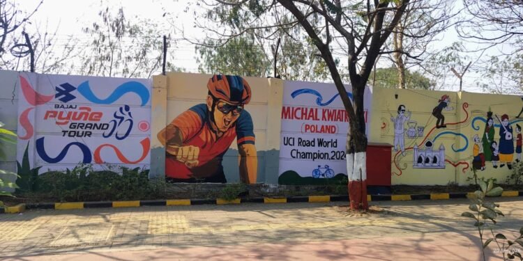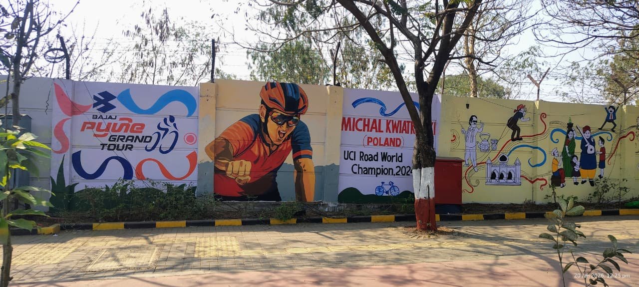 पुणे –  पुणे आणि पिंपरी-चिंचवड शहरात होत असलेल्या ‘बजाज पुणे ग्रँड टूर २०२६’ या ऐतिहासिक सायकलिंग स्पर्धेच्या पार्श्वभूमीवर या दोन्ही महानगरातील भिंती अक्षरशः बोलू लागल्या आहेत. शहराचे सौंदर्य वाढवण्यासाठी आणि नागरिकांमध्ये खेळाप्रती उत्साह निर्माण करण्यासाठी महापालिकेच्यावतीने ठिकठिकाणी आकर्षक भित्तिचित्रे साकारण्यात आली आहेत. यामुळे रस्ते केवळ रहदारीचे मार्ग न राहता, ते आता एक मुक्त कलादालन वाटू लागले आहेत.