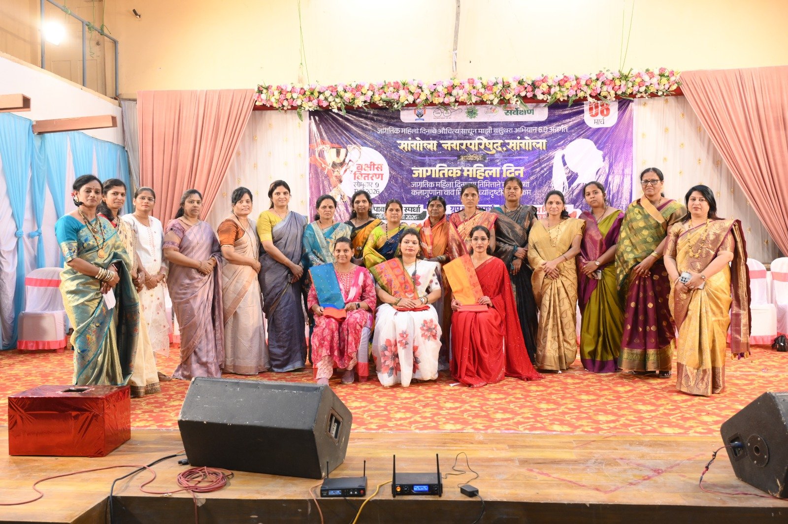 कार्यक्रमाच्या प्रास्ताविकात माजी नगराध्यक्षा राणी माने यांनी कार्यक्रमांची रूपरेषा सांगितली. मनोगतात निकिता देशमुख यांनी महिलांनी स्वतःच्या आरोग्याबाबत नेहमीच तत्पर असले पाहिजे असे सांगितले. अपेक्षा पाटील यांनी प्रत्येक दिवस महिलांनी स्वतःसाठी जगायला हवा असा सल्ला दिला. डॉ.नेहा साळुंखे-पाटील यांनी महिलांनी आपण स्वतःसाठी काय करू शकतो यासाठी प्रोत्साहन दिले. छाया मेटकरी यांनी सांगोला नगरपरिषद महिलांसाठी नावीन्यपूर्ण कार्यक्रम राबवत असते आणि इथून पुढे ही राबवले जातील असे प्रतिपादन अध्यक्षीय भाषणात केले. याप्रसंगी साहित्य क्षेत्रातील योगदानाबद्दल कवयित्री पुष्पा मिसाळ, मनीषा ठोंबरे, अर्चना देसाई, सुवर्णा तेली, हर्षदा गुळमिरे तसेच प्रशासनातील कामगिरीबद्दल सायली पाटील व पाककला स्पर्धेचे परीक्षक तनुजा गवळी, छाया यादव, राजश्री महिमकर, डान्स स्पर्धेचे परीक्षक मृणाल राऊत, शुभांगी पतंगे, सावित्रा कस्तुरे यांचा सन्मान करण्यात आला.कार्यक्रमाचे सूत्रसंचालन अनुपमा गुळमिरे यांनी केले. सदर कार्यक्रम यशस्वी करण्यासाठी नगरपरिषदेचे कर अधिकारी प्रियांका पाटील, अस्मिता निकम व कर्मचारी यांनी विशेष परिश्रम घेतले.