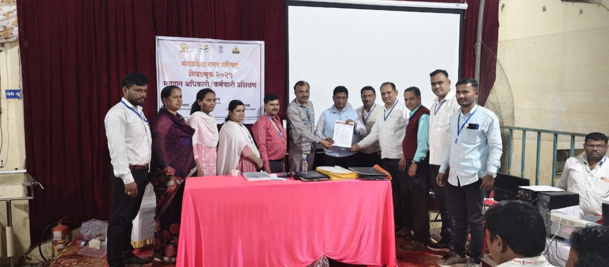 मंगळवेढा तहसिल कार्यालयातील सामुहिक रजेबाबत निवेदन तहसिलदार मदन जाधव यांना देताना कर्मचारी छायाचित्रात दिसत आहेत.