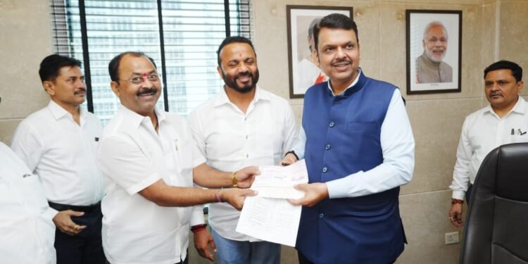 बार्शी – बार्शी तालुक्याबरोबर संपूर्ण महाराष्ट्रामध्ये अतिवृष्टीमुळे शेतकऱ्यांचे प्रचंड नुकसान झालेले आहे. महायुती सरकारच्या वतीने तर शेतकऱ्यांना शासनस्तरावर मदत होत आहे. परंतु शेतकऱ्यांना मदतीचा हात म्हणून मुख्यमंत्री देवेंद्र फडणवीस यांच्याकडे बार्शी कृषी उत्पन्न बाजार समितीच्या शिल्लक ठेवीपैकी रुपये १,००,००,००० (एक कोटी) चा धनादेश सोलापूर जिल्ह्याचे पालकमंत्री जयकुमार गोरे व माजी आमदार राजेंद्र राऊत यांनी दिला.
