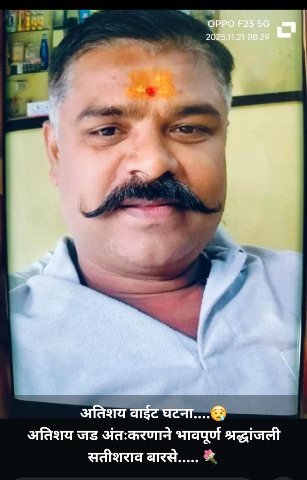 राष्ट्रीय महामार्गावर तामसा नजीक नियोजित टोलनाक्याचे काम सुरू असल्याने रस्त्यावरच ठेवण्यात आलेले सिमेंटचे प्लेट ‘क्रॅश बॅरियर’ ठेवलेले त्यांना दिसले नसल्याने त्यावर मोटारसायकल धडकल्याने मोठा अपघात झाला. त्यातच चालक सतीश बारसे यांचा जागीच मृत्यू झाला. तामसा येथील प्राथमिक आरोग्य केंद्रात मयतावर शेवविच्छेदन करुन बारसगाव येथे शोकाकुल वातावरणात अंत्यसंस्कार करण्यात आले.
