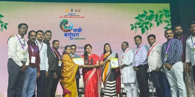 महाराष्ट्र राज्य शासनाच्या पर्यावरण व वातावरणीय बदल विभागाच्या वतीने आयोजित “माझी वसुंधरा अभियान” पुरस्कार सोहळा शनिवारी मुंबई येथे अत्यंत सन्मानपूर्वक पार पडला.