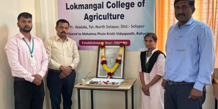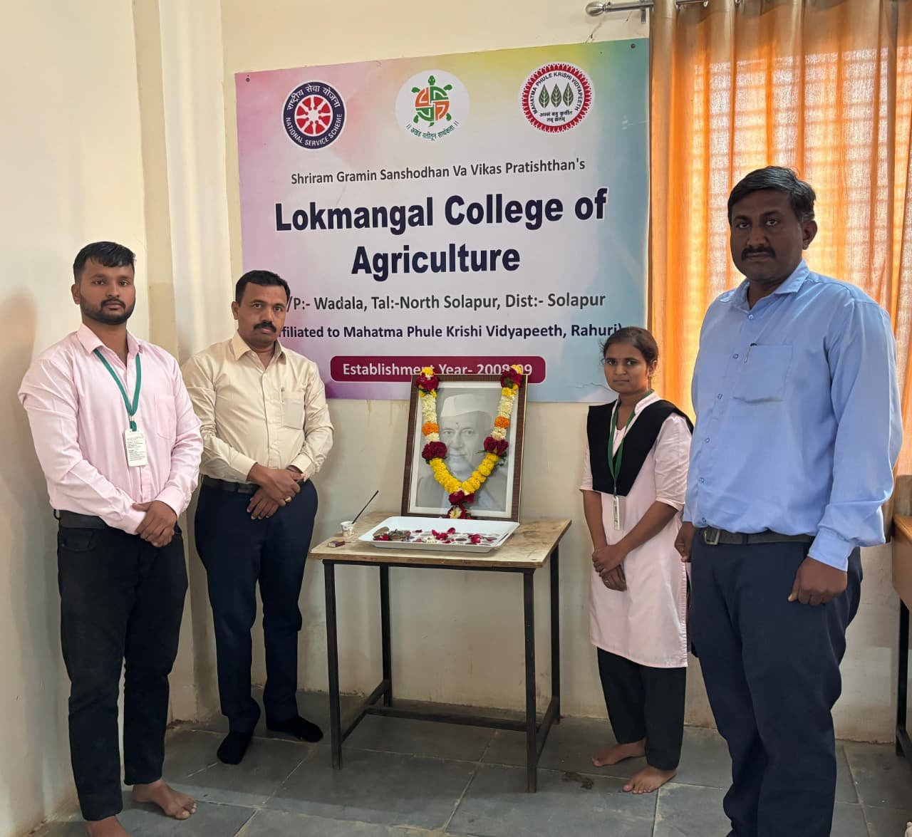 सोलापूर – श्रीराम ग्रामीण संशोधन व विकास प्रतिष्ठान संचलित लोकमंगल कृषी महाविद्यालय वडाळा येथे राष्ट्रीय सेवा योजनेअंतर्गत दिनांक १४ नोव्हेंबर रोजी बालदिन म्हणजेच पंडित जवाहरलाल नेहरू यांची जयंती मोठ्या उत्साहात साजरी करण्यात आली. कार्यक्रमाच्या अध्यक्षस्थानी महाविद्यालयाचे प्राचार्य डॉ. अमोल शिंदे हे लाभले होते. सदरील कार्यक्रमाची सुरुवात उपस्थित मान्यवर आणि विद्यार्थी प्रतिनिधी यांच्या हस्ते पंडित जवाहरलाल नेहरू यांच्या प्रतिमेचे पूजन करून करण्यात आली.
