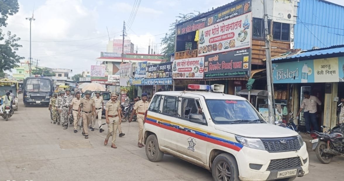 आदींसह पोलीस कर्मचारी यांनी शहरातून रूट मार्च काढला होता…..