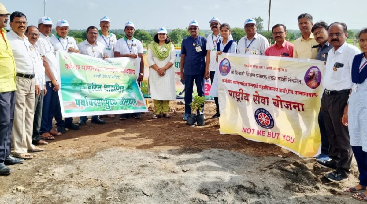 तभा फ्लॅश न्यूज/वाशी : जिल्हा प्रशासन व उत्स्फूर्त लोकसहभागातून वाशी येथे नगर पंचायतच्या वतीने सर्वे नंबर ६५ नवीन पाण्याच्या टाकीजवळ राबवण्यात आलेल्या “हरित धाराशिव अभियान” या मध्ये कर्मवीर मामासाहेब जगदाळे महाविद्यालय वाशी येथील प्राचार्य,प्राध्यापक वृंद, कर्मचारी, महाविद्यालयातील राष्ट्रीय सेवा योजना,राष्ट्रीय छात्रसेना आणि ग्रीनक्लब व इतर असे एकूण १८० विद्यार्थी विद्यार्थींनी व ४० प्राध्यापक व कर्मचारी यांनी वृक्षारोपण करण्यासाठी उत्स्फूर्त सहभाग नोंदवला.