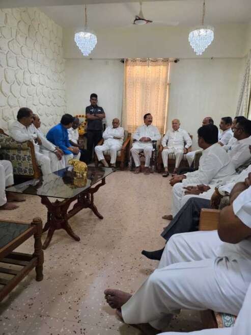 या बैठकीला आमदार रणजितसिंह मोहिते पाटील शेजारी अनुपस्थित असले तरी त्यांच्या पश्चात त्यांचे चिरंजीव शिवराज सिंह मोहिते पाटील हे मात्र उपस्थित आहेत. आत मध्ये या ज्येष्ठ नेत्यांची बैठक सुरू असून बाहेर शिवरत्न परिसरात हजारों कार्यकर्त्यांची मोठी गर्दी झाली आहे.