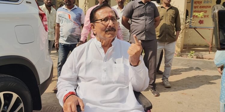 पाटील वस्ती येथील कृष्णानंद विद्यालय येथील बुधवार 91 वर्षे वयाच्या गोदाबाई विश्वंभर लोखंडे यांनी आपल्या मुलाच्या व सोन्याच्या मदतीने मतदान केंद्रावर येऊन मतदान केले