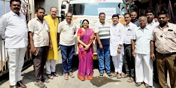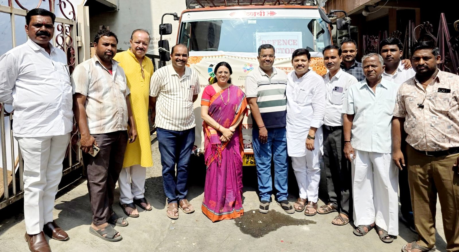 पुण्याच्या खा . डॉ . मेधाताई कुलकर्णी यांचे हस्ते मिठाई घेवून जाणाऱ्या ट्रक चे पुजन करण्यात आले .