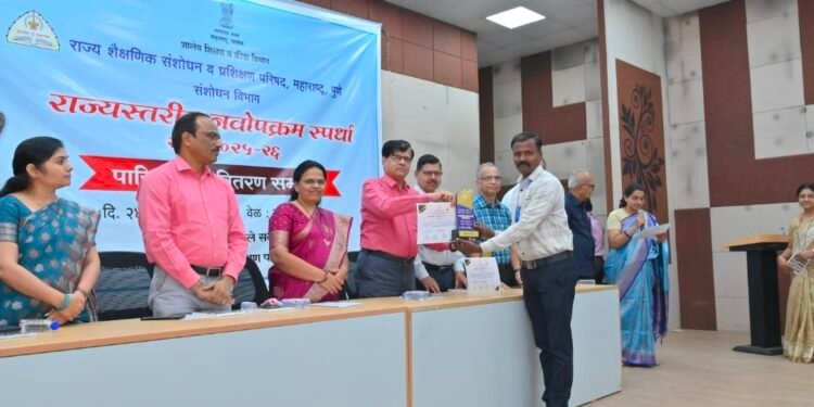 प्रविण भांगे यांनी दिव्यांग विद्यार्थ्यांसाठी राबविलेल्या ” दिव्यांग विद्यार्थ्यांना समस्या ठाई ठाई, न्यूरोथेरपी तेथे वरदान सिद्ध होई” या उपक्रमाचा दिव्यांग विद्यार्थ्यांना झालेला फायदा व सादरीकरणाचे परीक्षण करून परीक्षक डॉ. ह. ना.जगताप , सांगोलकर साहेब, महाले मॅडम यांनी त्यांना प्रथम क्रमांक घोषित केला. तसेच संचालक डॉ.हेमंत वसेकर यांच्या हस्ते व सहसंचालक डॉ. कमलादेवी आवटे , उपसंचालक डॉ.इब्राहिम नदाफ , विभाग प्रमुख डॉ. दत्तात्रय थिटे व इतर मान्यवर यांच्या उपस्थितीत सन्मानचिन्ह व प्रमाणपत्र देऊन त्यांच्या कार्याचा गौरव करण्यात आला.