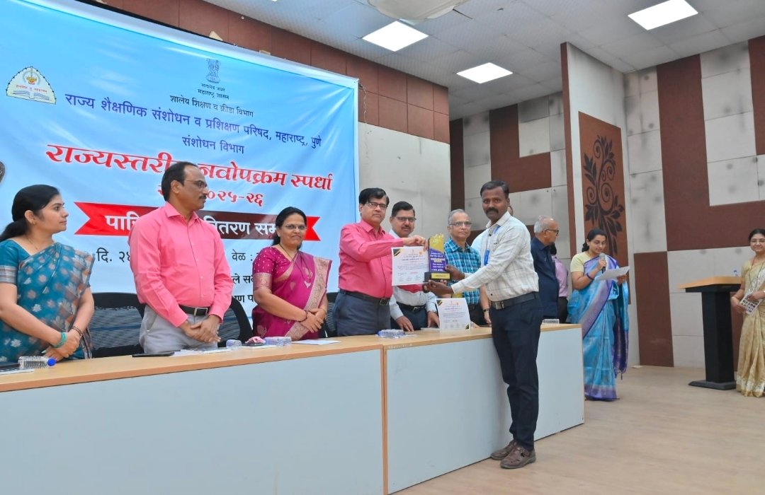 प्रविण भांगे यांनी दिव्यांग विद्यार्थ्यांसाठी राबविलेल्या ” दिव्यांग विद्यार्थ्यांना समस्या ठाई ठाई, न्यूरोथेरपी तेथे वरदान सिद्ध होई” या उपक्रमाचा दिव्यांग विद्यार्थ्यांना झालेला फायदा व सादरीकरणाचे परीक्षण करून परीक्षक डॉ. ह. ना.जगताप , सांगोलकर साहेब, महाले मॅडम यांनी त्यांना प्रथम क्रमांक घोषित केला. तसेच संचालक डॉ.हेमंत वसेकर यांच्या हस्ते व सहसंचालक डॉ. कमलादेवी आवटे , उपसंचालक डॉ.इब्राहिम नदाफ , विभाग प्रमुख डॉ. दत्तात्रय थिटे व इतर मान्यवर यांच्या उपस्थितीत सन्मानचिन्ह व प्रमाणपत्र देऊन त्यांच्या कार्याचा गौरव करण्यात आला.