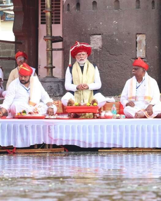 प्रधानमंत्री नरेंद्र मोदी यांनी दक्षिण गंगा म्हणून ओळखल्या जाणाऱ्या गोदावरी नदीचे जलपूजन केले. रामतीर्थ येथे दर्शन घेत विधीवत पूजा व आरती केली. भारत विश्वगुरू होऊ दे, असा संकल्प त्यांनी यावेळी केला. यावेळी गंगा पुरोहित संघाच्या वतीने अध्यक्ष व विश्वस्त यांच्याकडून प्रधानमंत्री श्री. मोदी यांचा चांदीचा अमृत कलश, शाल व श्रीफळ देऊन सत्कार करण्यात आला.