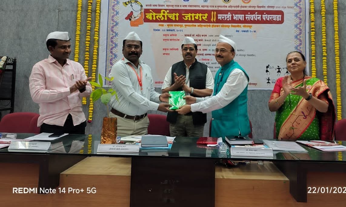 हा कार्यक्रम विद्यापीठाच्या मुख्य सभागृहामध्ये आयोजित करण्यात आलेला होता. पुण्यश्लोक अहिल्यादेवी होळकर सोलापूर विद्यापीठातील भाषा वांड:मय संकुले यांच्या वतीने हा कार्यक्रम आयोजित करण्यात आला होता हा कार्यक्रम यशस्वी करण्यामध्ये भाषा व वांड:मय विभागाच्या संचालिका डॉ. अंजना लावंड आणि त्यांचे सर्व सहकारी यांनी परिसर घेतले.