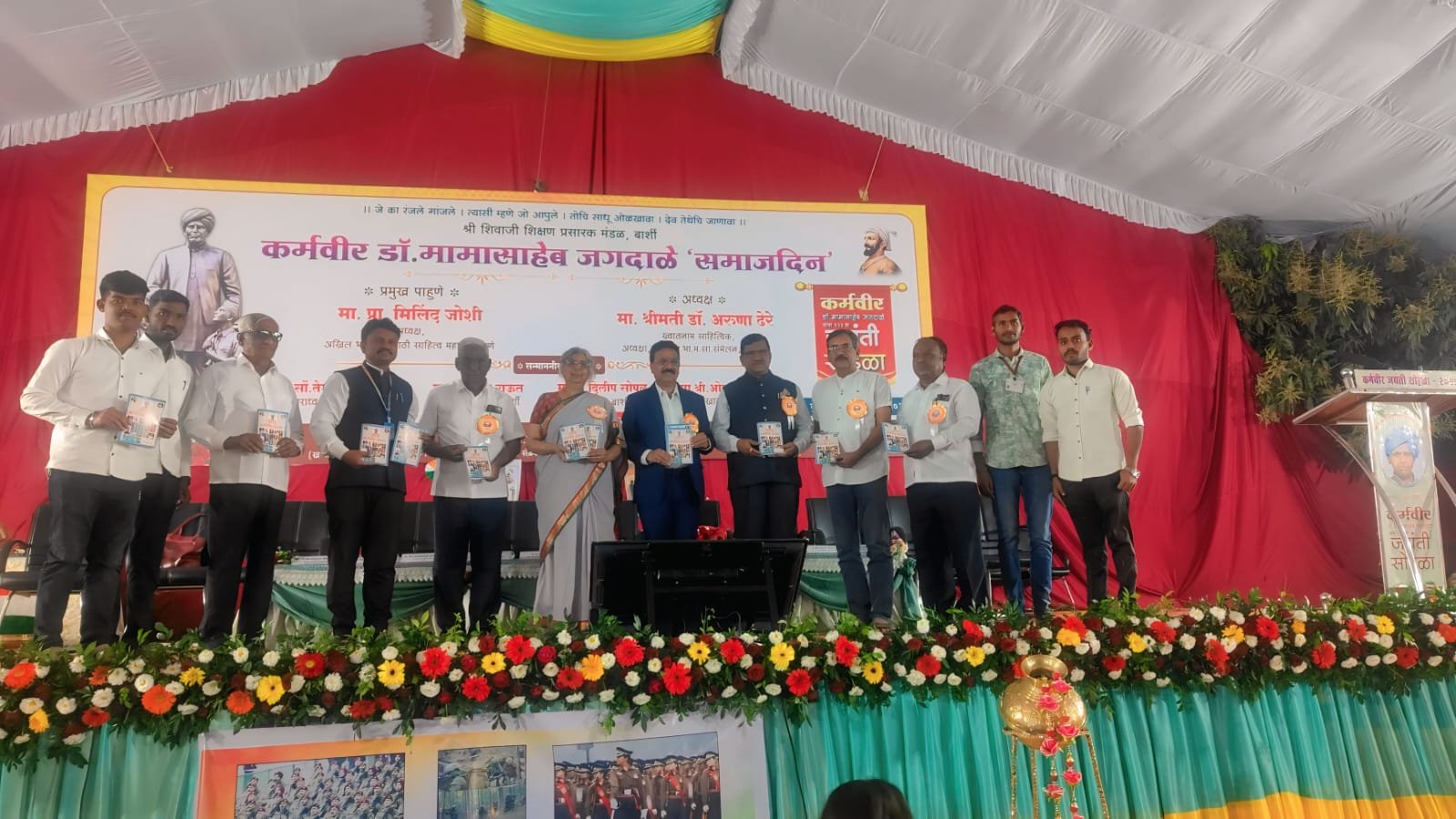 बार्शी – कर्मवीर डॉ. मामासाहेब जगदाळे यांचे जीवन कर्मप्रेरणेचा गाभा आहे. त्यांनी दृढनिश्चयातून परिश्रम करुन शिक्षणाचा मळा फुलविला. त्यातून संस्काराचे मोती घडले. त्यांची प्रेरणा लाखो विद्यार्थ्यांसाठी प्रेरक ठरली. हाच विचार केंद्रस्थानी ठेवून प्रा. डॉ. राहुल पालके यांनी कर्मवीर प्रेरणा या पुस्तकाचे लेखन केले. समाजदिनी ४ फेब्रवारी रोजी कर्मवीर डॉ. मामासाहेब जगदाळे यांच्या १२३ व्या जयंतीनिमित्त प्रा. डॉ.मिलिंद जोशी, अध्यक्ष, अखिल भारतीय मराठी साहित्य महामंडळ, पुणे, श्रीमती डॉ. अरुणा ढेरे, साहित्यिक, अध्यक्ष, ९२ वे अ. भा. म. सा. संमेलन, यवतमाळ यांच्या हस्ते या पुस्तकाचे प्रकाशन संपन्न झाले. याप्रसंगी श्री शिवाजी प्रसारक मंडळाचे अध्यक्ष डॉ. बी. वाय. यादव, उपाध्यक्ष नंदन जगदाळे, सचिव पी . टी. पाटील, सहसचिव ए.पी. देबडवार, खजिनदार जयकुमार शितोळे, प्राचार्य ए. बी. शेख, प्रा. डॉ. समाधान पवार आदी उपस्थित होते.
