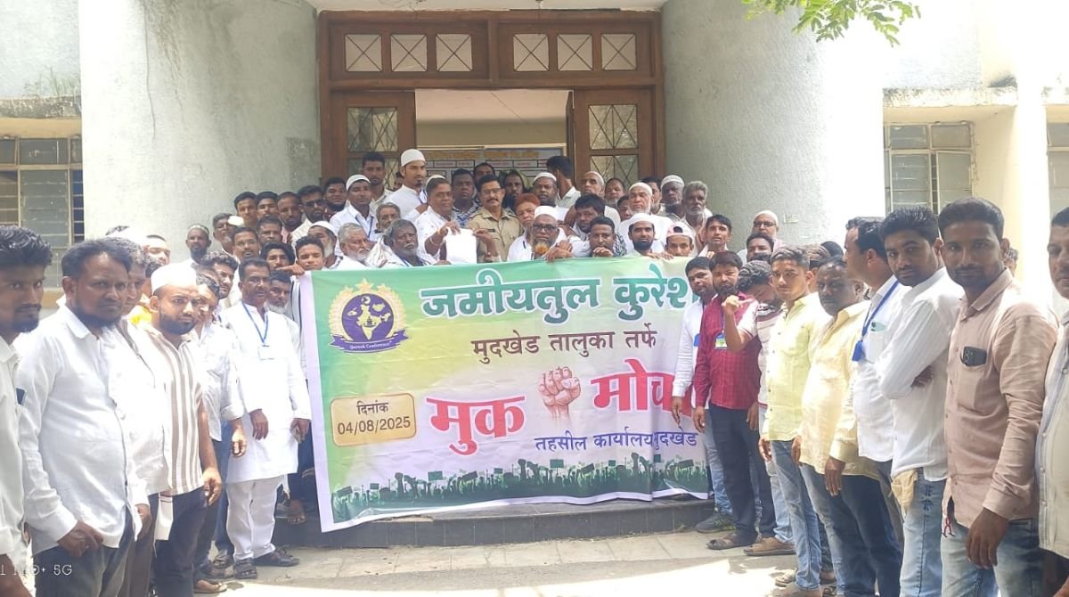 समाजावर होणारे दिवसेंदिवस गो गोरक्षना कडुन होत असलेला त्रास यांना प्रतिबंध करण्यासाठी कुरेशी समाजाकडून तहसील कार्यालयावर मूक मोर्चा काढण्यात आला आहे. यावेळी मुदखेड कुरेशी समाज तालुका अध्यक्ष मोहम्मद गौस अब्दुल रहमान, शहराध्यक्ष मोहम्मद खासिम मोहम्मद हुसेन यांच्या सह कुरेशी समाज बांधव यांची उपस्थिती होती. या मूक मोर्चा चे आयोजन शहरातील समस्त खुरेशी समाज बांधवांनी केले होते.