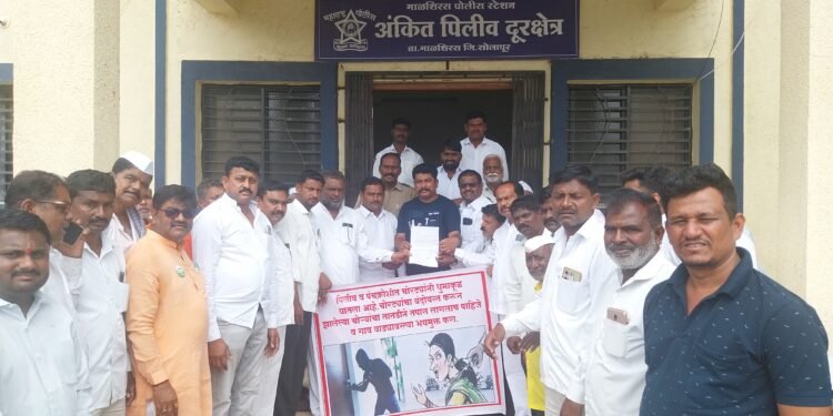 पिलीव येथील नागरी आघाडीच्या वतीने काढण्यात आलेल्या जनआक्रोश मोर्चाचे निवेदन देताना आरिफखान पठाण, अमोल मदने,उमेशभाऊ सरवदे, संग्राम पाटील, व इतर मान्यवर.