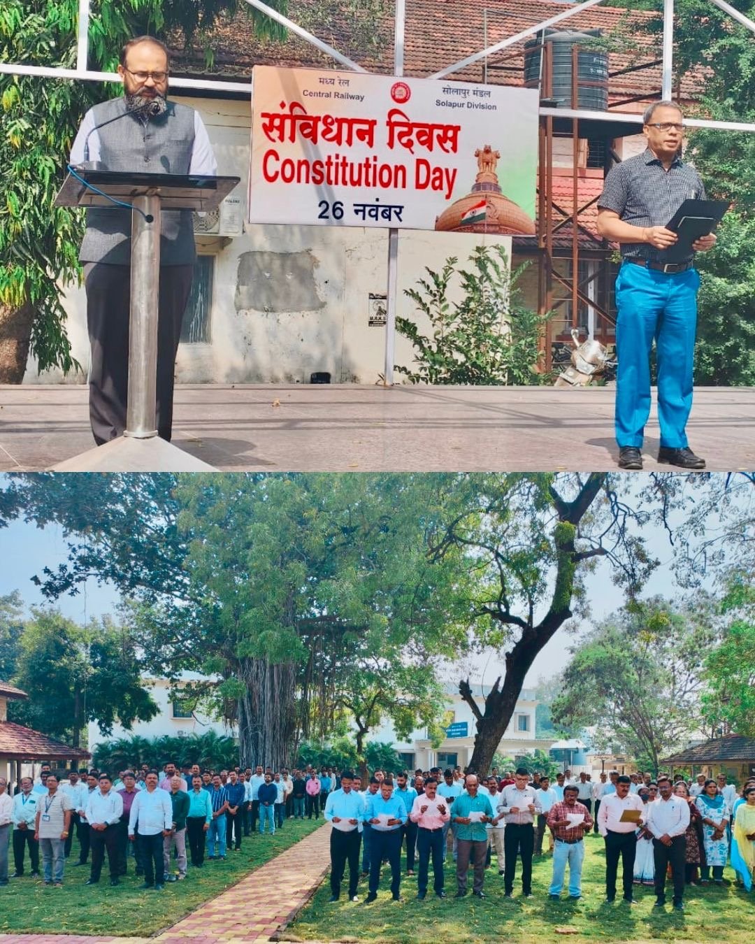 सदरचा केंद्रीय कार्यक्रम सकाळी ११:०० वाजता सोलापूर डीआरएम कार्यालयाच्या आवारात आयोजित करण्यात आला. विभागीय रेल्वे व्यवस्थापक डॉ. सुजित मिश्रा यांनी भारतीय संविधानाच्या प्रस्तावनेचे वाचन करून या कार्यक्रमाची सुरुवात केली. त्यानंतर, उपस्थित सर्व अधिकारी आणि कर्मचारी न्याय, स्वातंत्र्य, समानता आणि बंधुत्वाच्या तत्त्वांचे पालन करण्यासाठी एकता आणि सामायिक संकल्पाचे प्रतीक असलेल्या सामूहिक वाचनात सहभागी झाले.