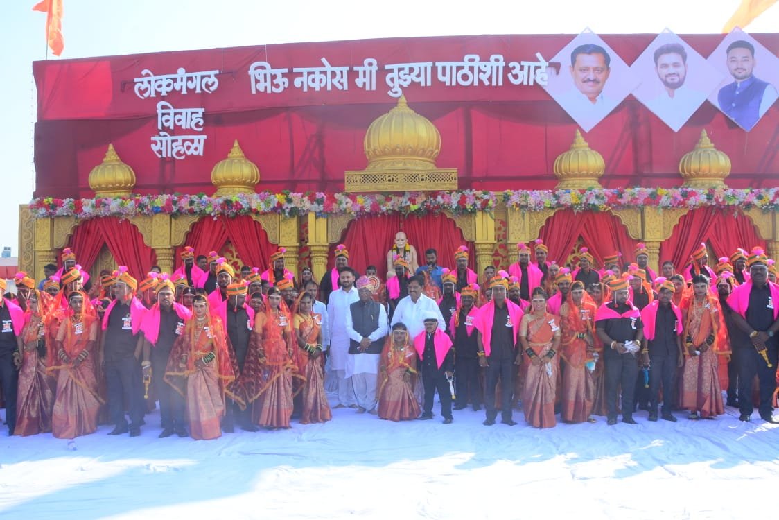 सोलापूर – लोकमंगल फाऊंडेशनतर्फे आयोजित 46 वा सर्वधर्मीय सामुदायिक विवाह सोहळा आज शिवाजी अध्यापक विद्यालय, नेहरू नगर, सोलापूर येथे उत्साहात पार पडला. या सोहळ्यात 52 वधू-वर जोडप्यांचे विवाह संपन्न झाले. या कार्यक्रमास राजस्थानचे राज्यपाल मा. श्री. हरीभाऊ बागडे प्रमुख पाहुणे म्हणून उपस्थित होते.