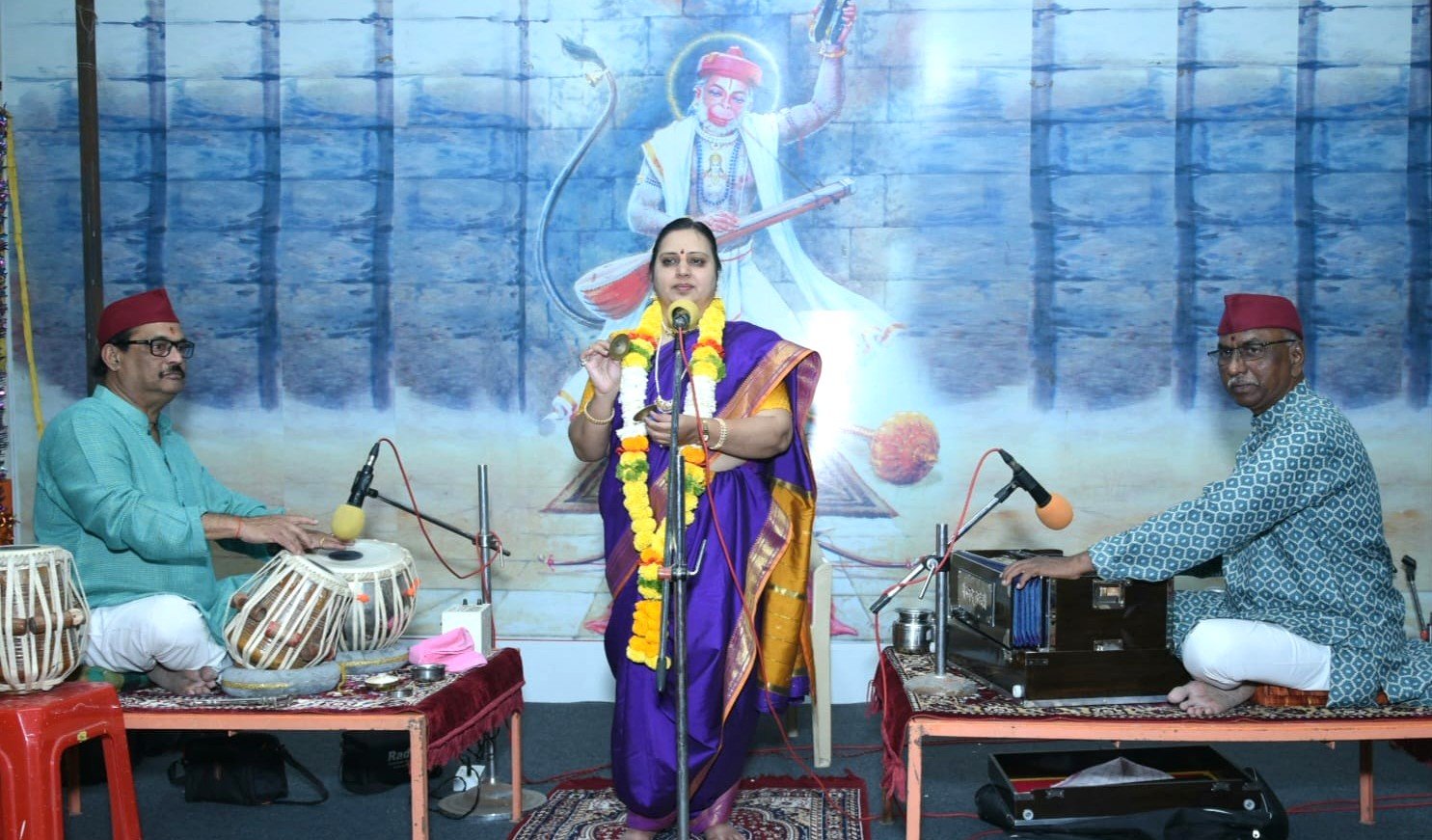 फोटो ओळी.. समर्थ सदन येथे कीर्तन सादर करताना कीर्तनकार ह.भ.प. दीपाताई भंडारे . फोटो.. अतुल देशपांडे, सातारा..