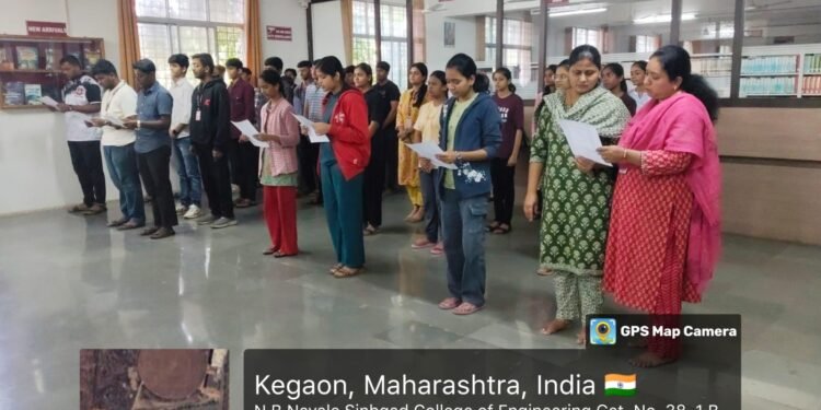 सोलापूर : सावित्रीबाई फुले शिक्षण प्रसारक मंडळाच्या वतीने संचालित एन. बी. नवले सिंहगड अभियांत्रिकी महाविद्यालयात 26 नोव्हेंबर रोजी संविधान दिन मोठ्या उत्साहात साजरा करण्यात आला. या निमित्ताने महाविद्यालयातील विद्यार्थ्यांसह शिक्षकवृंदांनी भारतीय संविधानाच्या उद्देशिकेचे सामूहिक वाचन करून संविधानाबाबत आपली बांधिलकी व्यक्त केली.