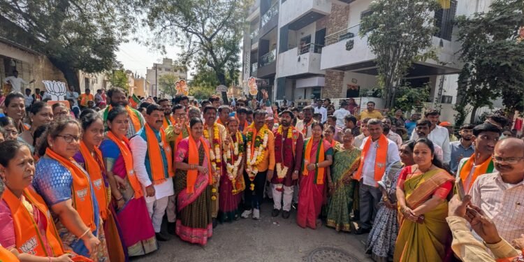 सोलापूर – महानगरपालिका पंचवार्षिक सार्वत्रिक निवडणुकीची रंगत वाढली आहे. मुख्यमंत्री देवेंद्र फडणवीस यांच्या दौऱ्यानंतर शहरात भाजपने वातावरण झाले आहे. याच पार्श्वभूमीवर प्रभाग क्र. १३ मधील भारतीय जनता पक्षाचे अधिकृत उमेदवार अ) सुनिता सुनिल कामाठी, ब) अंबिका हनुमंत चौगुले, क) सत्यनारायण रामय्या गुर्रम व ड) विजय भुमय्या चिप्पा यांच्या प्रचारार्थ ढोल-ताशांच्या गजरात भव्य पदयात्रा काढण्यात आली.या पदयात्रेला प्रमुख मान्यवर म्हणून शहर मध्यचे आमदार देवेंद्र कोठे, मोनिका कोठे, राधिका चिलका उपस्थित होत्या.