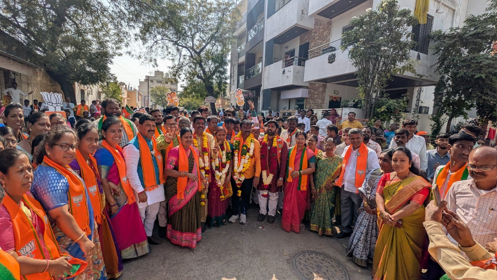 सोलापूर – महानगरपालिका पंचवार्षिक सार्वत्रिक निवडणुकीची रंगत वाढली आहे. मुख्यमंत्री देवेंद्र फडणवीस यांच्या दौऱ्यानंतर शहरात भाजपने वातावरण झाले आहे. याच पार्श्वभूमीवर प्रभाग क्र. १३ मधील भारतीय जनता पक्षाचे अधिकृत उमेदवार अ) सुनिता सुनिल कामाठी, ब) अंबिका हनुमंत चौगुले, क) सत्यनारायण रामय्या गुर्रम व ड) विजय भुमय्या चिप्पा यांच्या प्रचारार्थ ढोल-ताशांच्या गजरात भव्य पदयात्रा काढण्यात आली.या पदयात्रेला प्रमुख मान्यवर म्हणून शहर मध्यचे आमदार देवेंद्र कोठे, मोनिका कोठे, राधिका चिलका उपस्थित होत्या.