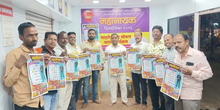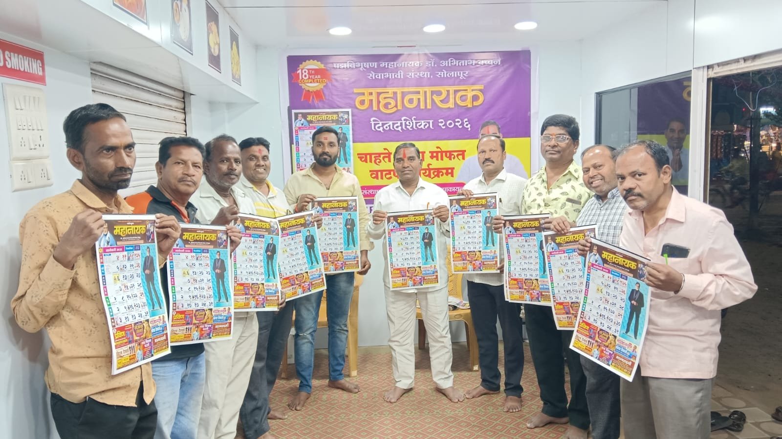 सोलापूर – पद्मविभूषण महानायक डॉ. अमिताभ बच्चन सेवाभावी संस्था सोलापूरच्या वतीने महानायक दिनदर्शिका 2026 चे अठरा वर्षे पूर्ण झाले असून विडी घरकुल सागर येथे महानायक दिनदर्शिका 2026 चे प्रकाशन सोहळा संपन्न झाला व तसेच महानायक दिनदर्शिका चाहत्यांना मोफत देण्यात आले.