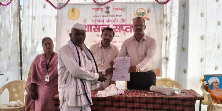 हिंगोली – औंढा नागनाथ तालुक्यातील सारंगवाडी,येथे सुशासन दिनानिमित्त कार्यक्रम आयोजित करण्यात आला होता त्याप्रसंगी श्री माचेवाड उपस्थित होते.याप्रसंगी कार्यक्रमाचे अध्यक्ष सरपंच ठोंबरे होत्या. प्रमुख पाहुणे श्री.अनिल माचेवाड हे होते.यावेळी विविध प्रकारचे प्रमाणपत्रे वाटप करण्यात आले. तसेच शिधापत्रिका, जिवंत सातबारा चे अर्ज संकलन, अनुदान ekyc, पुरवठा ekyc, निराधार ekyc आरोग्य तपासणी करण्यात आली. यावेळी , डॉ बाबासाहेब आंबेडकर , बिरसा मुंडा,यांचे प्रतिमेला, , पुष्पहार अर्पण करून कार्यक्रमाची सुरुवात झाली.