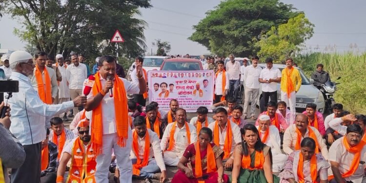 माळीनगर – संत तुकाराम महाराज पालखी महामार्गावरील माळीनगर गट नंबर दोन नजीक असलेल्या जाधववाडा हॉटेल समोर जिल्हा युवा सेनेच्या वतीने जिल्हाप्रमुख गणेश इंगळे, युवा सेना उपतालुकाप्रमुख दत्ता साळुंखे यांच्या उपस्थितीत विविध मागण्यांसाठी रस्ता रोको आंदोलन करण्यात आले.