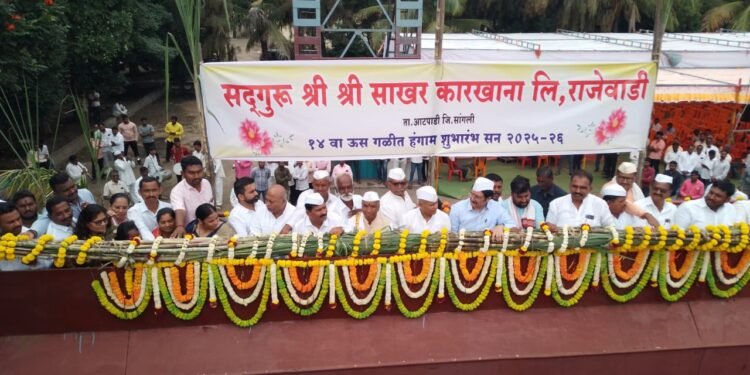 पिलीव – सोलापूर सांगली सातारा जिल्ह्याच्या सरहद्दीवर सद्गुरु श्री श्री रविशंकरजी तथा गुरुजी यांच्या प्रेरणेने (राजेवाडी) श्री श्री श्रीनगर ता. आटपाडी या ठिकाणी गेली तेरा वर्ष शेतकऱ्यांच्या हितासाठी व त्यांची जीवनमान उंचावण्यासाठी सुरू असलेल्या सद्गुरु श्री श्री साखर कारखान्याच्या चौदाव्या गळीत हंगामाच्या कार्यक्रमाचे आयोजन करण्यात आले होते.