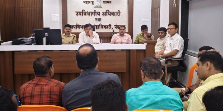 कार्तिकी यात्रा नियोजनाबाबत प्रांत कार्यालय, पंढरपूर येथे बैठकीचे आयोजन करण्यात आले होते. बैठकीस उपविभागीय पोलिस अधिकारी प्रशांत डगळे, मंदिर समितीचे कार्यकारी अधिकारी राजेंद्र शेळके, कार्यकारी अभियंता अमित निमकर, तहसीलदार सचिन लंगुटे, गटविकास अधिकारी अमोल जाधव, मुख्याधिकारी महेश रोकडे, तालुका आरोग्य अधिकारी डॉ.एकनाथ बोधले, उपजिल्हा रुग्णालयाचे वैद्यकीय अधिक्षक डॉ.दिपक धोत्रे, यांच्यासह संबधित विभागाचे विभाग प्रमुख उपस्थित होते.