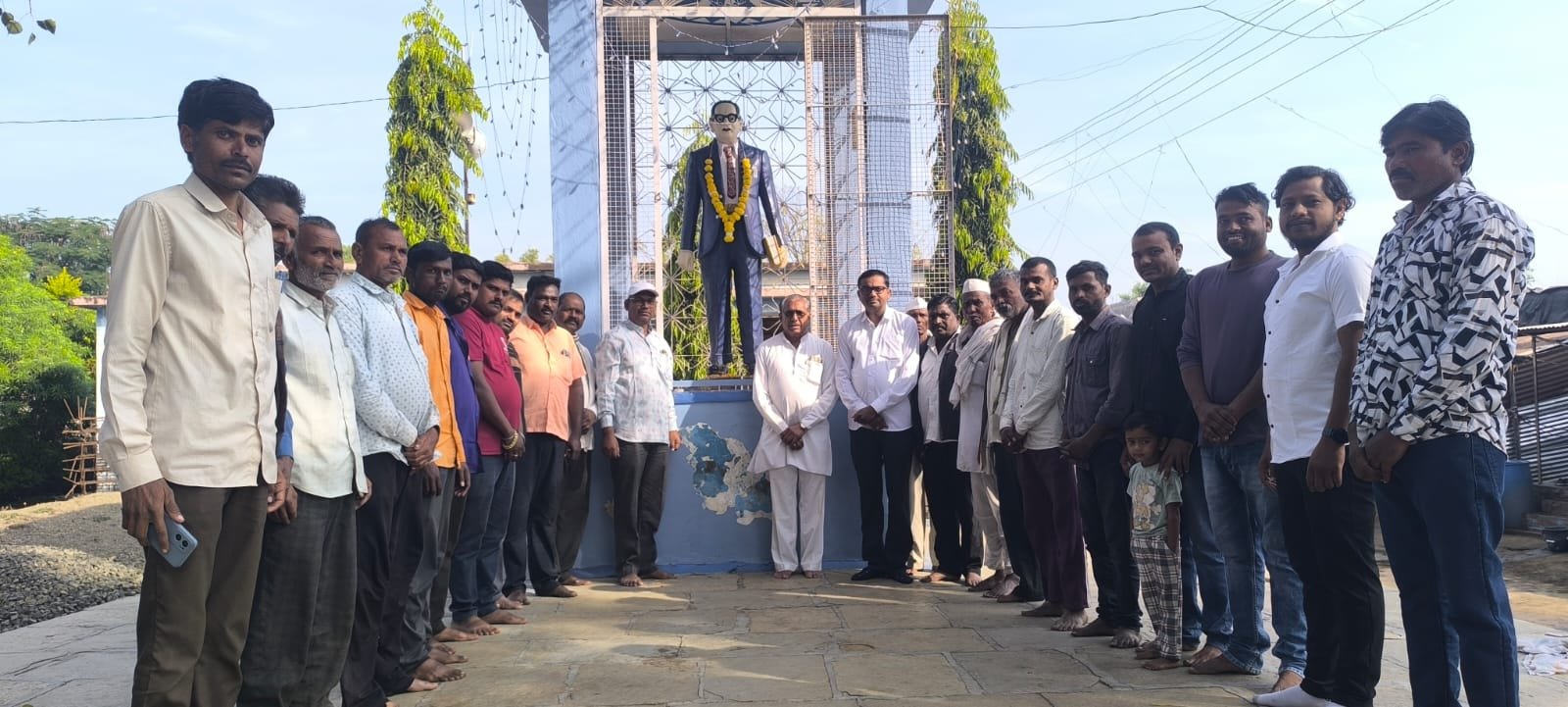 दरम्यान येथील सरपंच रामसिंग डोभाळ यांच्या हस्ते महामानव डॉ. बाबासाहेब आंबेडकर यांच्या पुतळ्यास पुष्पहार अर्पण करून अभिवादन करण्यात आले.