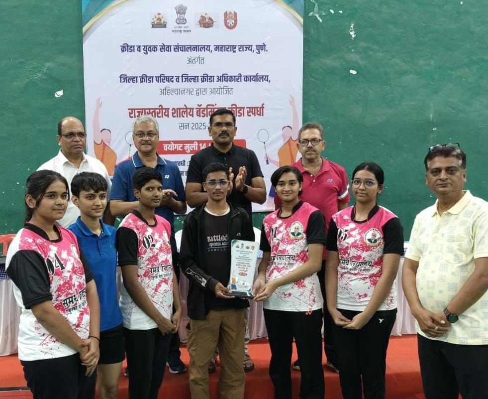 अहिल्यानगर येथे मंगळवारी खेळविण्यात आलेल्या राज्यस्तरीय शालेय बॅडमिंटन स्पर्धेत एकुर्का रोड येथील समर्थ माध्यमिक व उच्च माध्यमिक विद्यालयाच्या १९ वर्षीय मुलींच्या संघाने प्रथम क्रमांक मिळविला. समर्थ विद्यालयाच्या संघाने अंतिम सामन्यात बलाढ्य अशा मुंबई संघाचा पराभव करून हे सुवर्ण यश प्राप्त केले आहे.