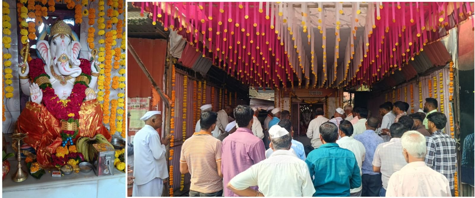 संग्राम दोस्ती मंडळ गणेश मंदिरात भजन व आरती करताना मंडळाचे पदाधिकारी भजनी मंडळ व भक्तगण व नागरिक