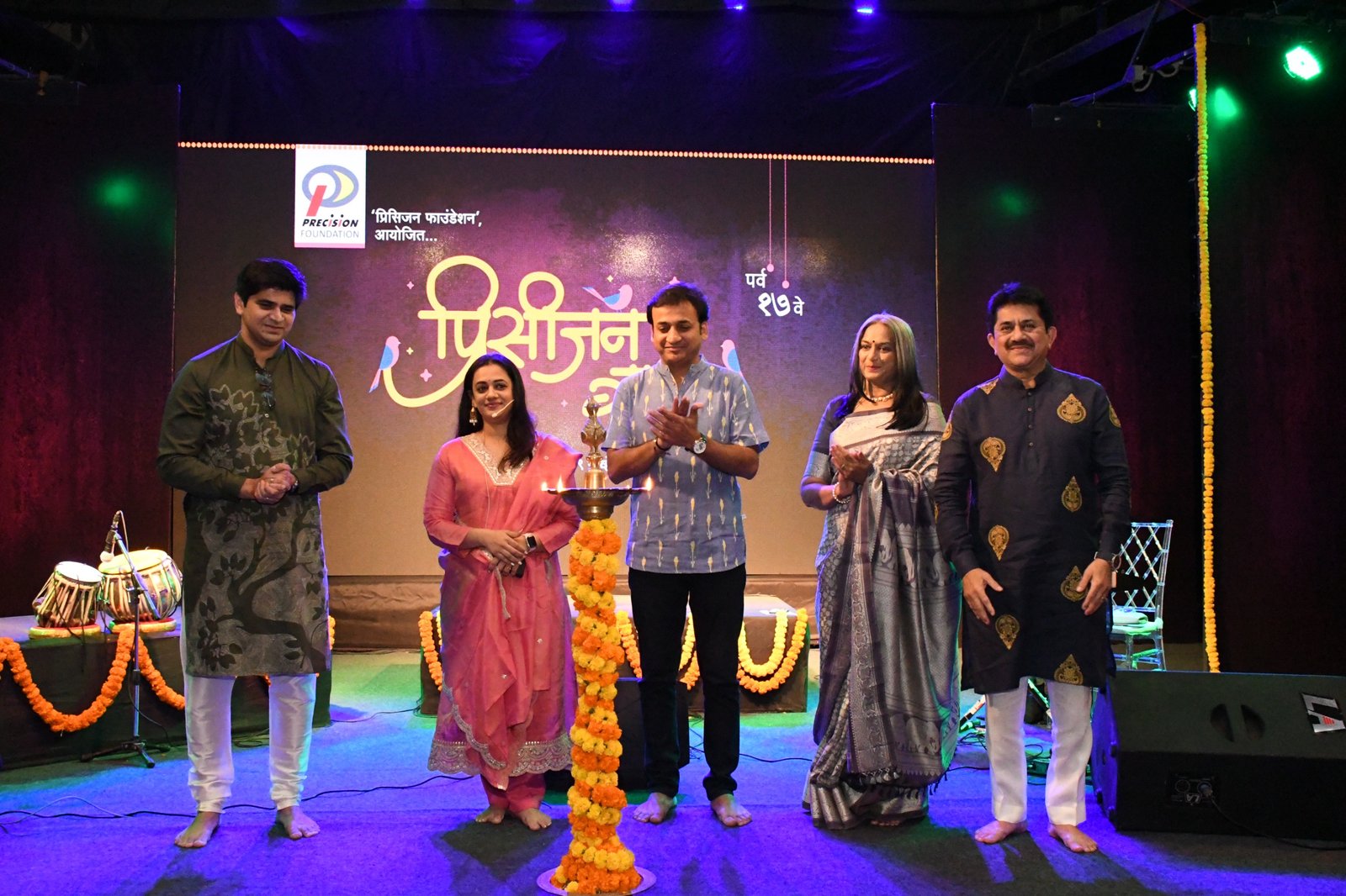 कार्यक्रमाच्या प्रारंभी प्रिसिजनचे चेअरमन यतीन शहा, प्रिसिजन फाउंडेशनच्या अध्यक्षा सुहासिनी शहा आणि करण शहा यांच्या हस्ते कलाकारांचा सन्मान करण्यात आला.