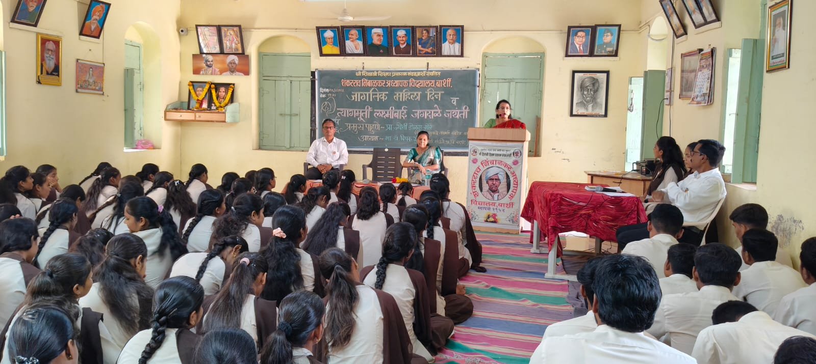 बार्शी – श्री शिवाजी शिक्षण प्रसारक मंडळ बार्शी संचलित शंकरराव निंबाळकर अध्यापक विद्यालय बार्शी येथे मंगळवार दि. १० मार्च रोजी क्रांतीज्योती सावित्रीबाई फुले पुण्यतिथी तसेच जागतिक महिला दिन साजरा करण्यात आला. याप्रसंगी कर्मवीर डॉ. मामासाहेब जगदाळे यांच्या सुविद्या पत्नी त्यागमूर्ती लक्ष्मीबाई जगदाळे यांची जयंतीदेखील साजरी करण्यात आली.