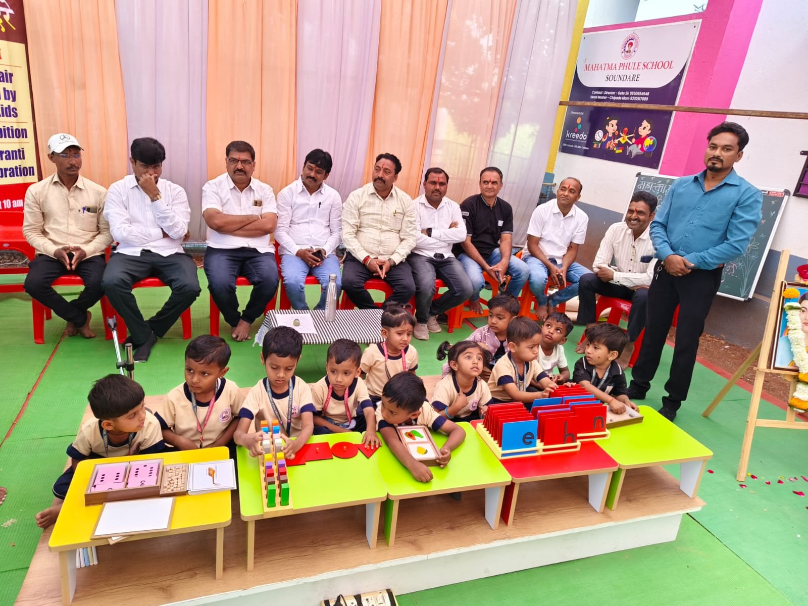 विज्ञान प्रदर्शन उद्घाटन. ्श्री. राजेंद्रभाऊ सुरवसे (सरपंच, उद्योजक) यांच्या हस्ते करण्यात आले. यावेळी समस्त पालक, ग्रामपंचायत सदस्य, अनेक मान्यवर उपस्थित होते. आजच्या कार्यक्रमाचे अध्यक्ष श्री. राहुल वाणी (ओन्ली समाजसेवा बहुउद्देशीय संस्था, बार्शी), सचिव अजय तिवारी, क्रिडो पदाधिकारी, मोठ्या संख्येने पालक उपस्थित होते.