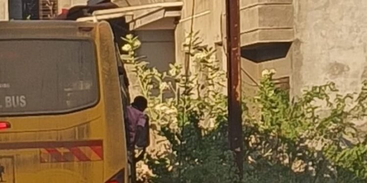 शहरातील अरुंद रस्त्यावर घडलेल्या घटनेने स्कूलबस सुरक्षेची ढिसाळ व्यवस्था उघड झाली.