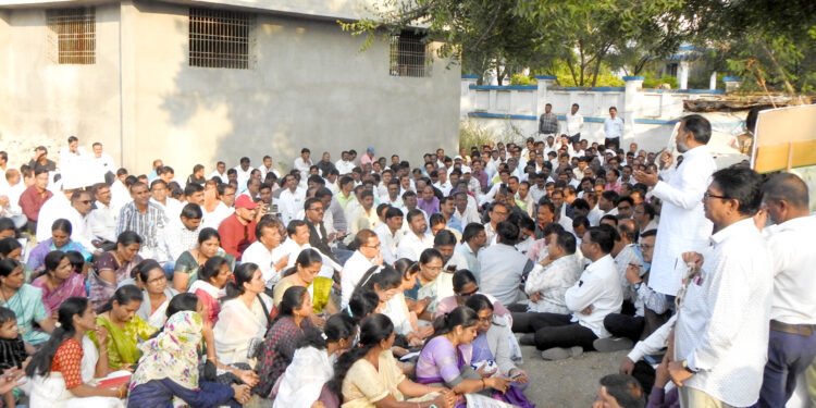 जालना – महाराष्ट्र राज्य शिक्षक व शिक्षकेतर कर्मचारी संघटना समाज समिती जिल्हा जालना च्या वतीने शिक्षक पतसंस्थेतून मोठा मोर्चा काढण्यात आला. यामध्ये शिक्षकांना टीईटी शक्ती निर्णय 15 मार्च 2024 च्या संच मान्यता शासन निर्णय रद्द करणे व इतर विविध प्रलंबित प्रश्नांबाबत पाच मार्च 2025 रोजी राज्यभर शाळा बंद आंदोलन व महामोर्चाबाबत आज रोजी मोर्चा काढण्यात आला.
