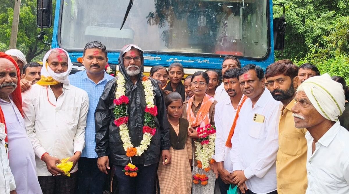 गावात सकाळी साडे नऊच्या सुमारास बस दाखल झाली. यावेळी शालेय मुलींनी गाडीच्या वाहक व चालक यांचा पुष्पहार देऊन सन्मान करत पेढे वाटून जल्लोष व्यक्त केला. याप्रसंगी तालुका काँगेस कमिटीचे अध्यक्ष प्रताप देशमुख बारडकर यांनी नारळ फोडून गाडीचे पूजन केले. त्यावेळी प्रा. संदीपकुमार देशमुख, सरपंच बालाजी पाटील, बाबुराव कळणे, गोपिराज कळणे पाटील, भास्कर कळणे, चक्रधर पाटील, भगवान पवार, शिवाजी गिरे, प्रशांत कळणे, पुताजी कळणे, लखन गिरे, चक्रधर कळणे, अविनाश कळणे, सटवाजी कळणे, गजानन कळणे , राम कल्याणकर आदि सह ग्रामस्थ उपस्थित होते.